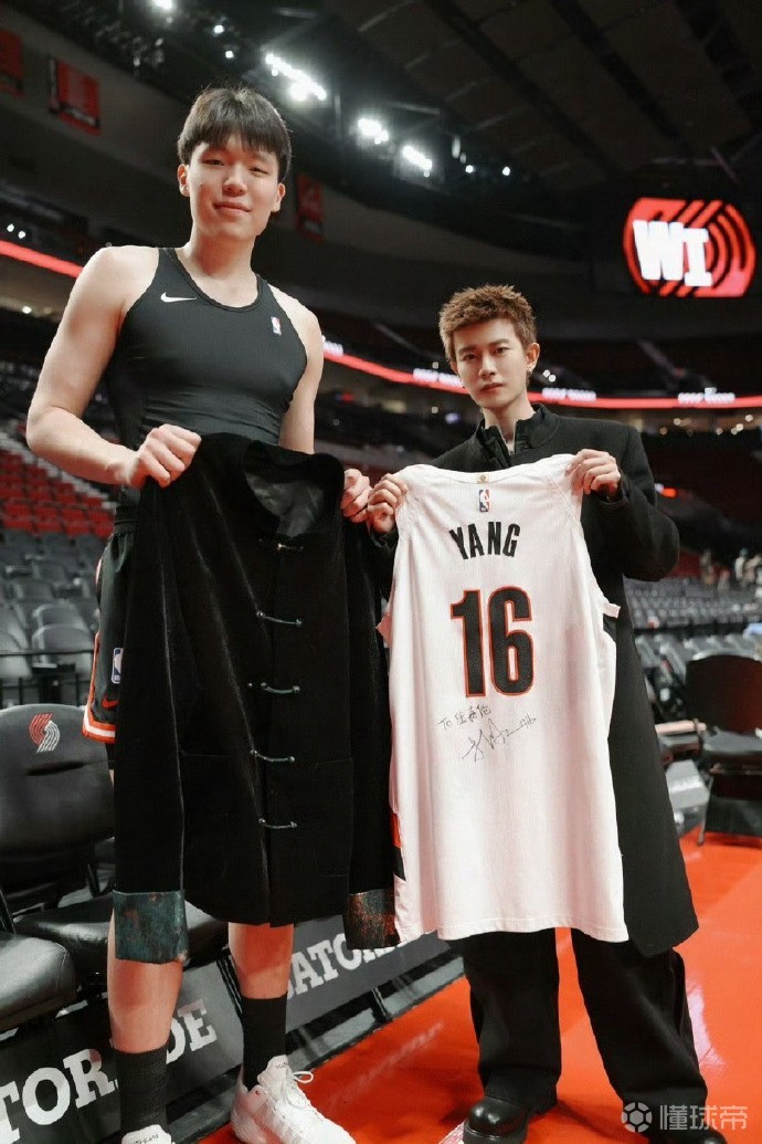 山东籍演员任嘉伦造访了位于美国波特兰的开拓者主场,他和自己的山东老乡杨瀚森合影留念,并且获得了杨瀚森的签名球衣。