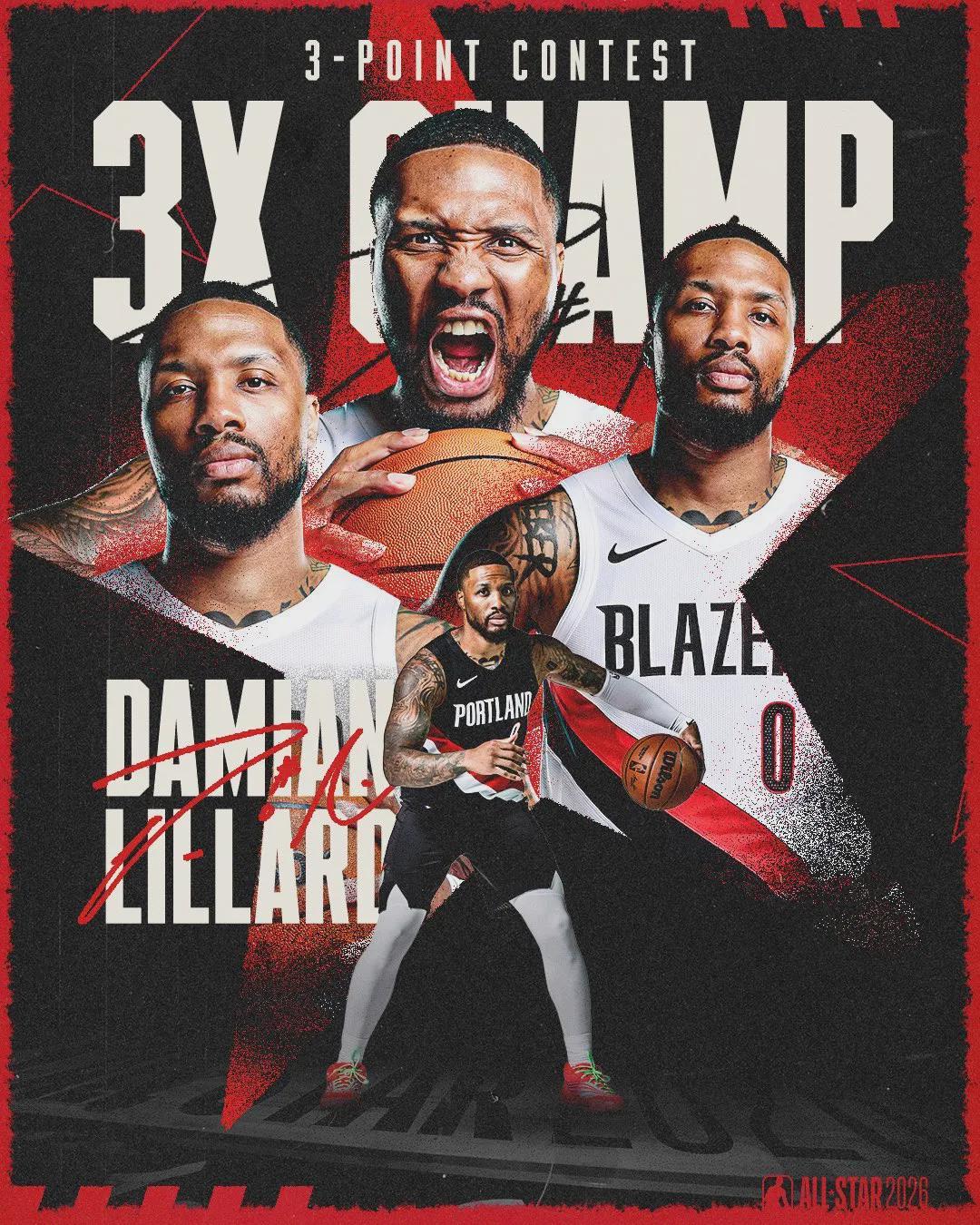 赛季报销!利拉德照样夺冠!成为三分大赛历史第3人