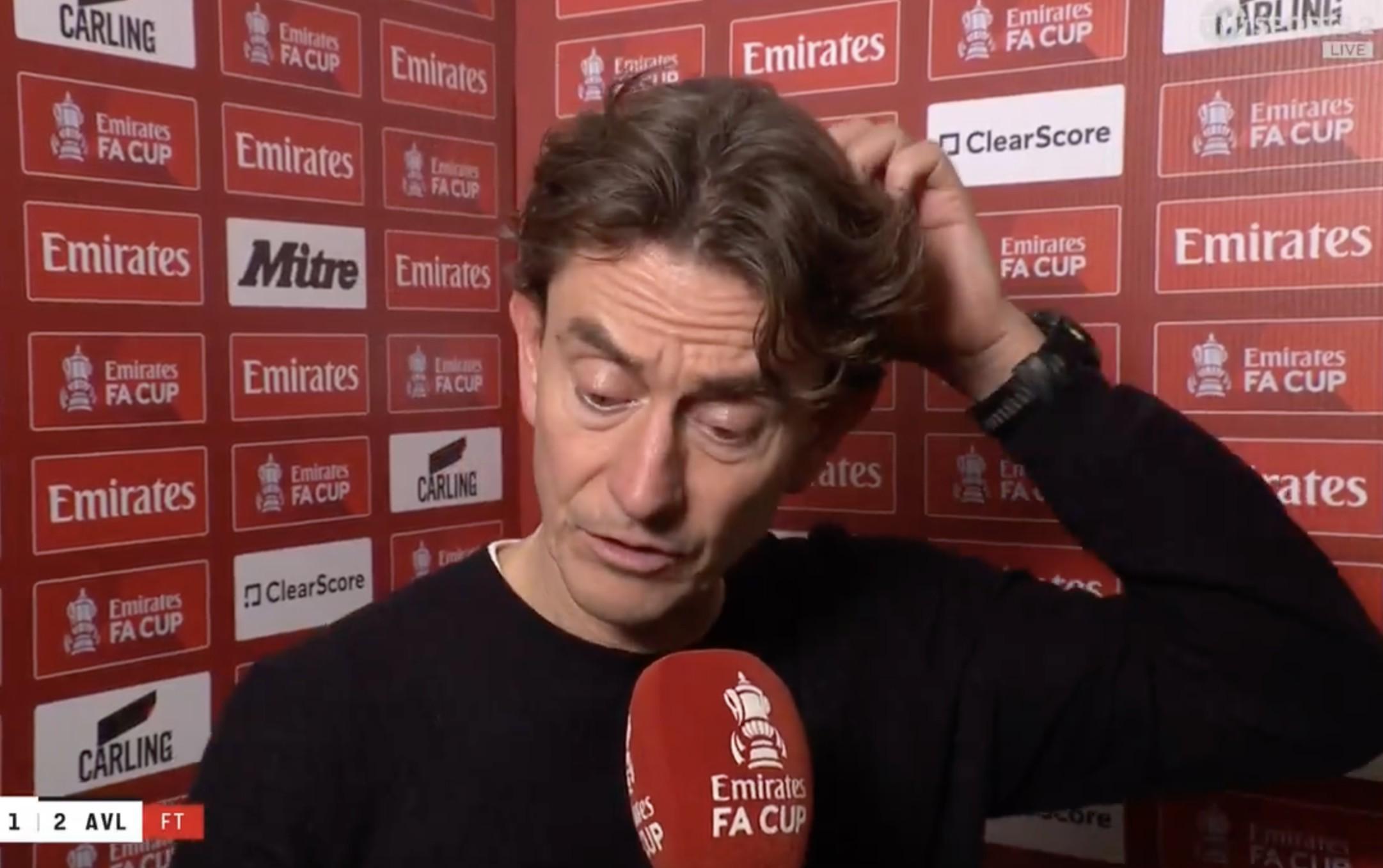 足总杯第三轮,热刺主场1-2不敌维拉,赛后,热刺主帅弗兰克接受了TNT体育的采访。
