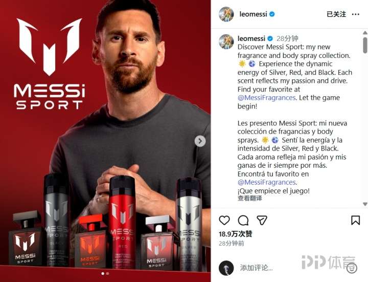 梅西更新社媒,宣传自己的个人品牌Messi Sport推出新系列香水。