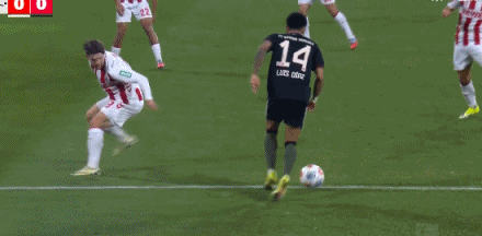 第20分钟,迪亚斯倒三角回传,格纳布里准备射门被克劳斯破坏