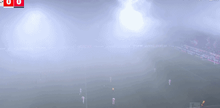 第4分钟,球迷燃放烟火影响视线,比赛短暂暂停