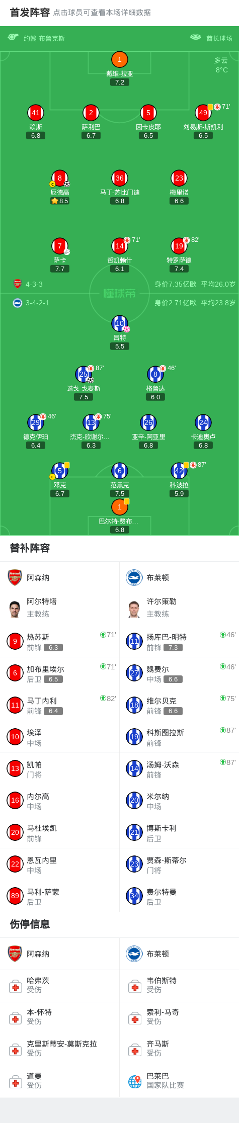 剑南春丨阿森纳2-1布莱顿,厄德高破门,吕特乌龙,拉亚神扑