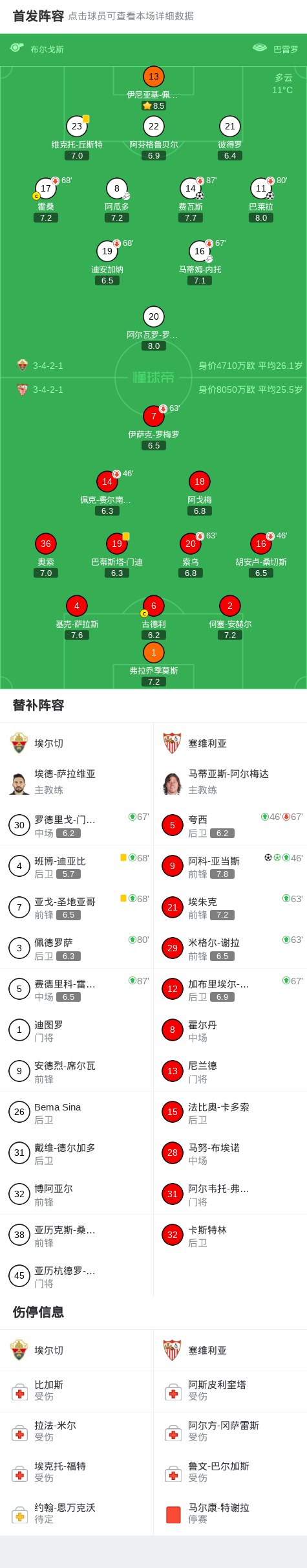 北京时间1月20日西班牙足球甲级联赛 联赛 第20轮,埃尔切主场对阵塞维利亚。埃尔切费瓦斯破门,巴莱拉破门。塞维利亚阿科-亚当斯梅开二度。最终比分埃尔切 2-2 塞维利亚。