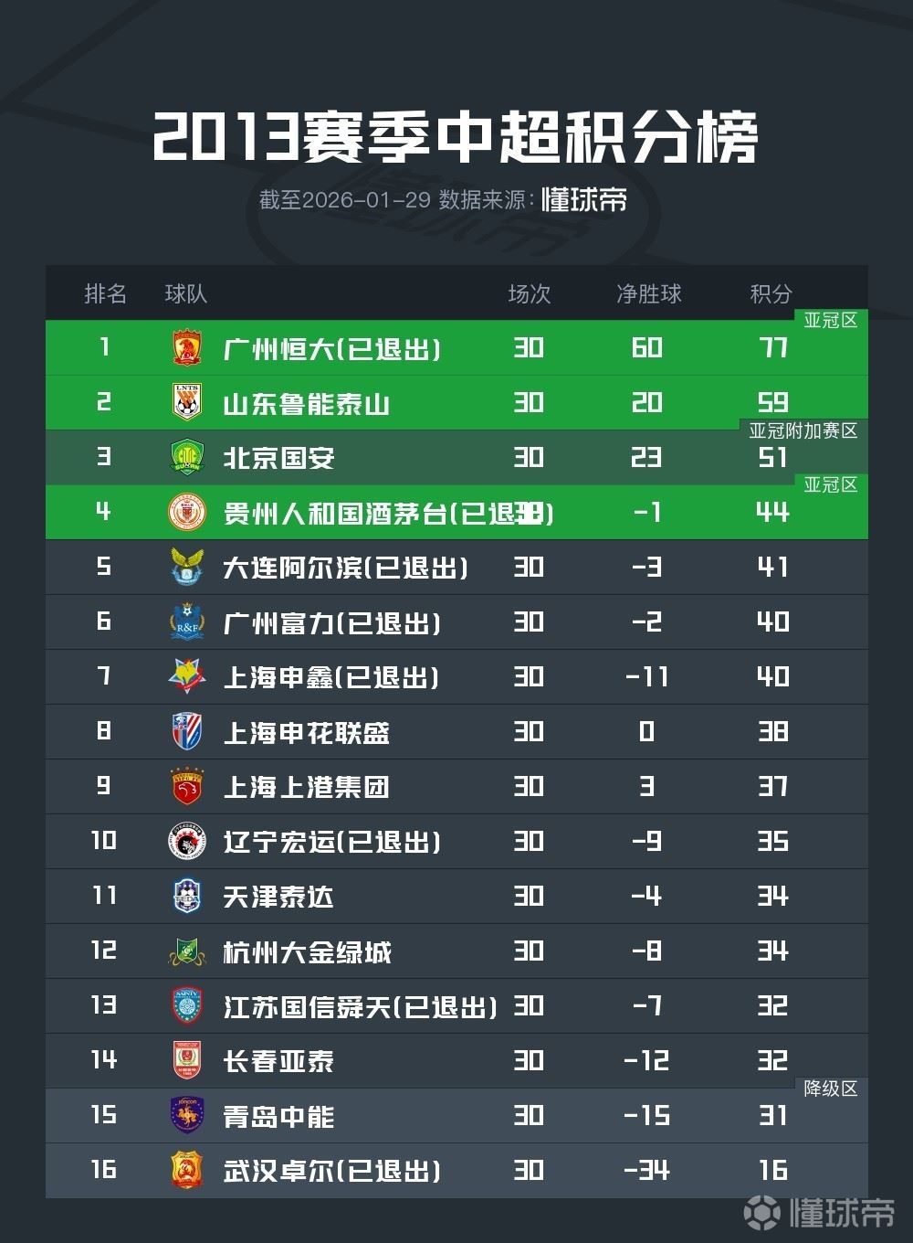 北京时间1月29日,公安部、体育总局、中国足协在北京联合召开足球行业“假赌黑”问题专项整治行动新闻发布会,之后,中国足协官网通报了涉案俱乐部和73人名单。在2013年足协开完罚单后,当年中超至今未解散球队今年均遭处罚。