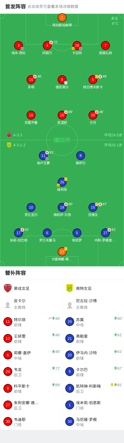 第戎女足2-1逆转南特女足,卡拉热、埃米-西伦建功