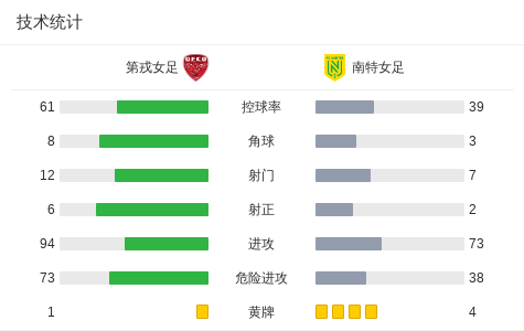 半场战报:第戎女足0-1南特女足,埃卢瓦赛破门