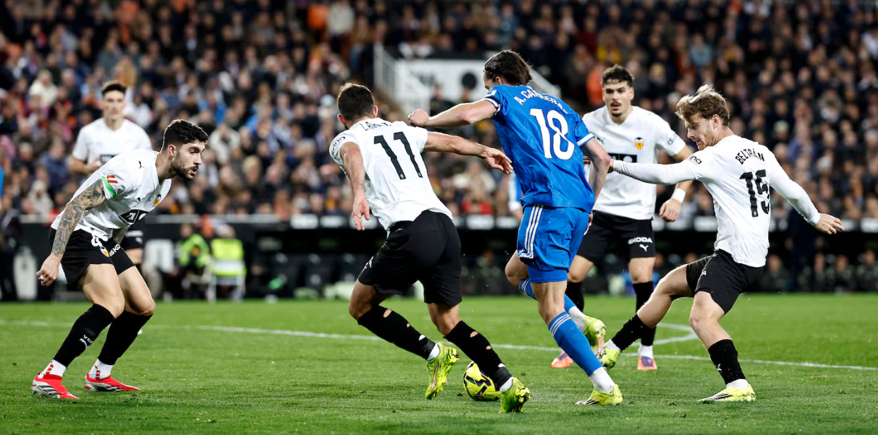 于是,比赛大部分时间陷入令人窒息的僵局,传球横向居多,节奏缓慢。皇马依靠姆巴佩的个人能力零星制造机会,但他与中场及锋线搭档贡萨洛之间缺乏有效联结。瓦伦西亚的反击则常常终结于最后一传。