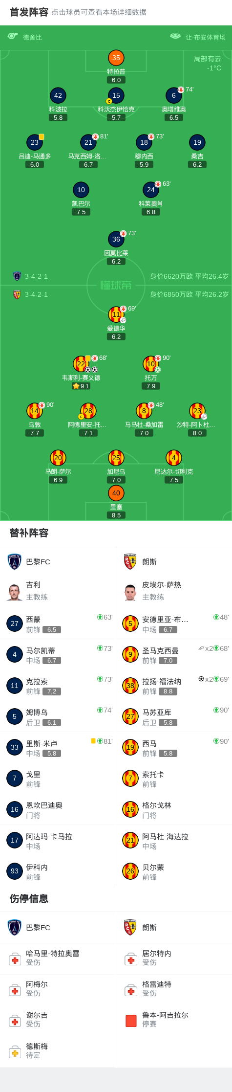 第38分钟,朗斯球员沙特-阿卜杜勒哈米德助攻韦斯利-赛义德打入一球。