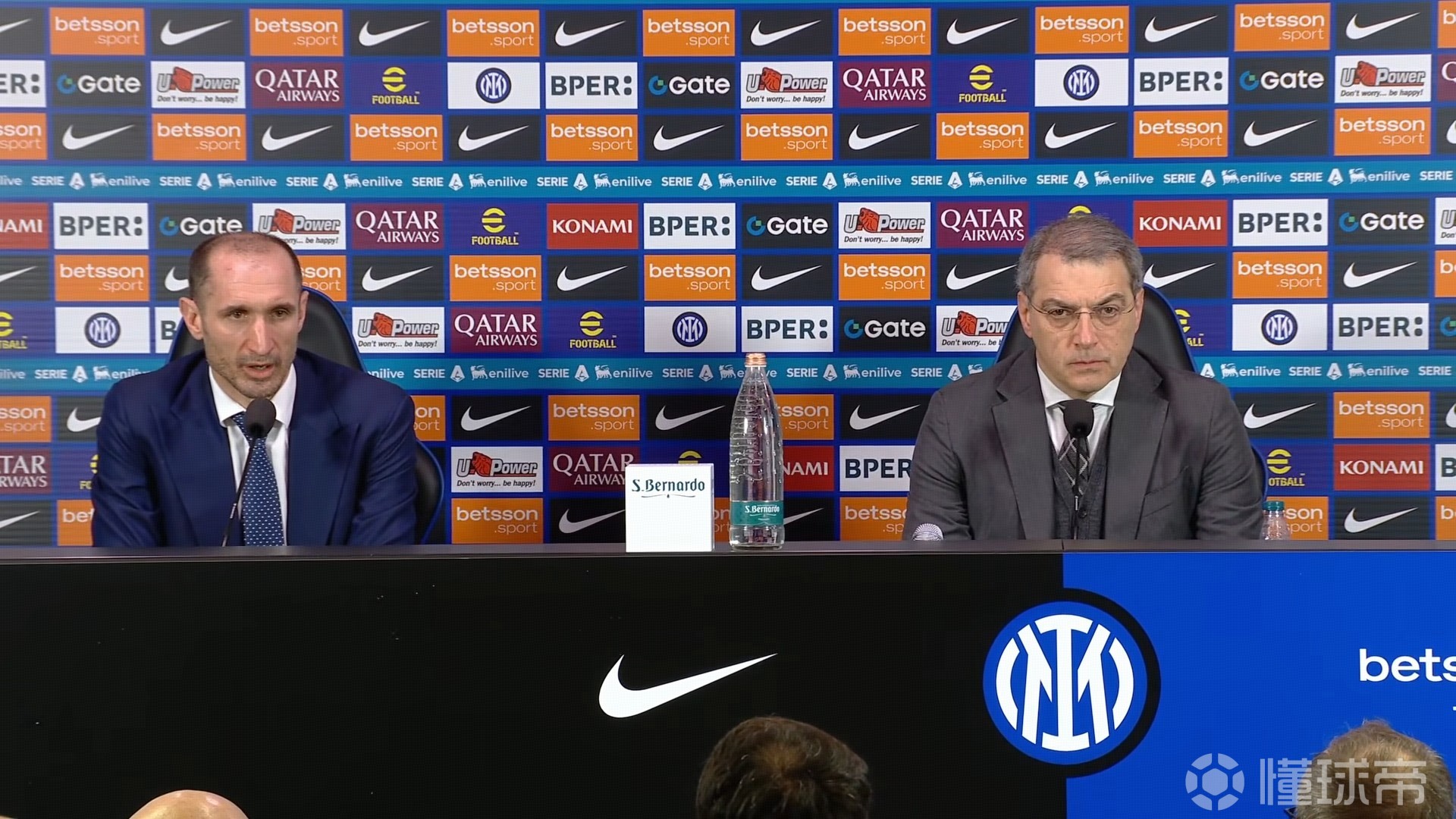 在意甲第25轮的意大利国家德比客场2-3负于国际米兰之后,尤文图斯足球战略发展总监基耶利尼和总经理达米安-科莫利一同出席了新闻发布会。