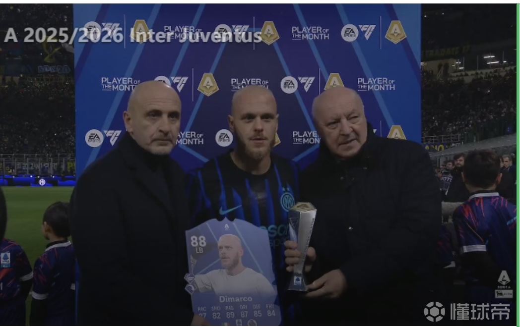 德比赛前,迪马尔科凭借1月份4球2助攻的优异表现,当选意甲联赛1月最佳球员,本场赛前领取了球员奖杯。