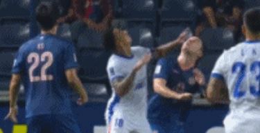 从慢镜头来看,拉唐在争抢时伸出左手,一肘打在了古德的面部。比赛仅仅踢了32分钟,申花不仅两球落后,还少打一人,在荣誉之战里遇到了天崩开局。