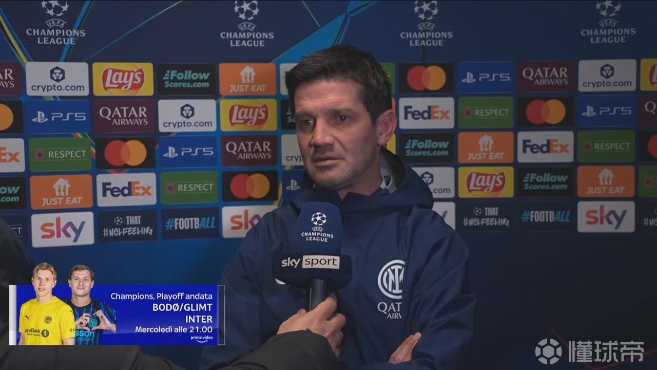 在欧冠淘汰赛附加赛首回合客场挑战博德闪耀的比赛前夕,国际米兰主教练齐沃接受了来自意大利天空体育的采访。