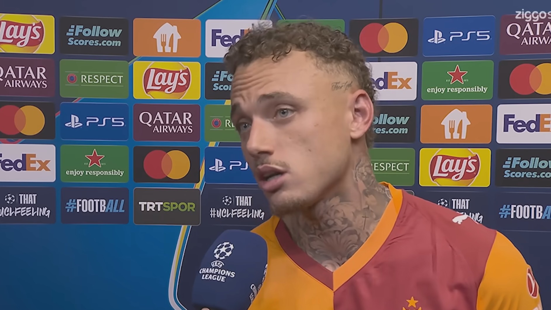 在代表加拉塔萨雷在主场5-2战胜尤文图斯的赛后,本场比赛梅开二度的那不勒斯外租前锋诺阿-朗接受了Ziggo Sport的采访。