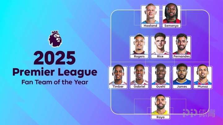 英超球迷票选2025最佳阵容:哈兰德领衔 B费、赖斯在列